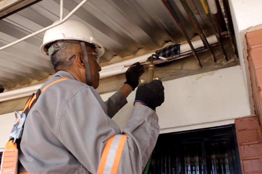 Nos preocupamos com a segurança de nossos profissionais, investindo em EPIs e treinamentos de prevenção de acidentes, além de atender às normas internas de segurança de nossos clientes, como as normas regulamentadoras NR5, NR6, NR7, NR10, NR12, NR18, NR34 e NR35. Na área de engenharia, cumprimos rigorosos requisitos em instalações, reformas de ambientes e manutenção.